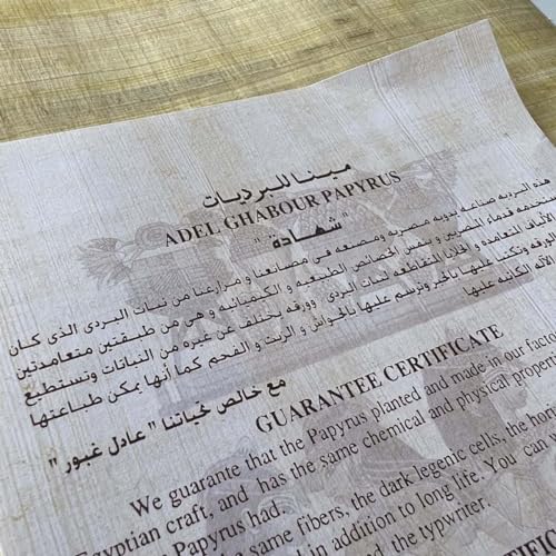 - شهادة الأصالة - تأتي لوحات ورق البردي الخاصة بنا مع شهادة الأصالة، حيث تم رسمها في مصر على أجود ورق البردي المصري الأصلي المصنوع يدويًا.