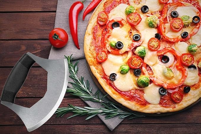 Generic - Salad chopper knife, stainless steel blade with protective cover, ergonomic non-slip handle, vegetable chopping knife for pizza, cheese, onion, carrot,