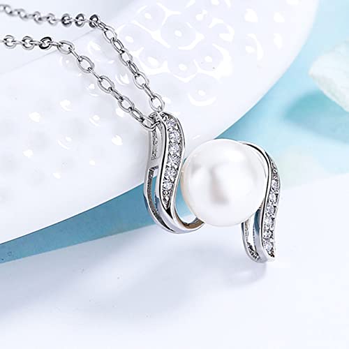Salanda - Single Pearl Necklace for Women, White Dainty CZ Pearl Drop Pendant Necklace| Elegant adjustable Chain Necklace| 18k Silver Plated Pearl Necklace for Women, Pearl, Cubic Zirconia