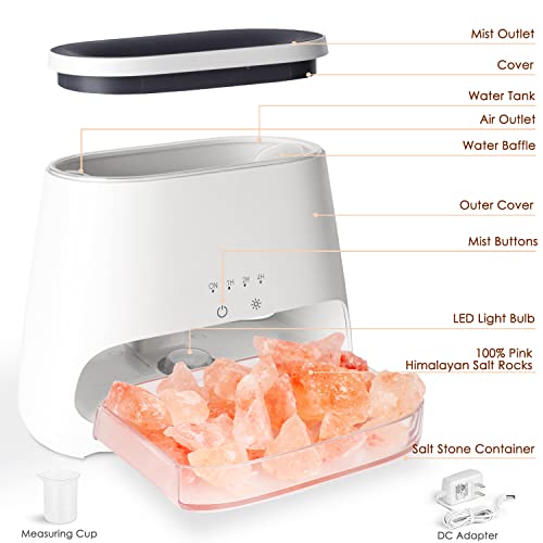 SALKING - SALKING 2-in-1 Himalayan Salt Lamp & Essential Oil Diffuser, Ultrasonic Aromatherapy Diffuser Cool Mist Humidifier, Original Salt Therapy Lamp, 100% Pure Himalayan Salt, Ambient Glow, 150ml (White)