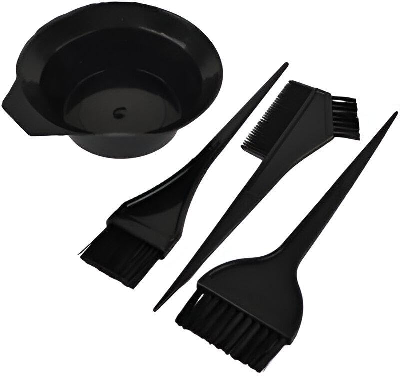Generic - Salon Hair Tools - Complete hair coloring and mixing set including durable bowls, ergonomic brushes and dual comb, designed for efficient use in beauty salons or personal styling, 4 black pieces