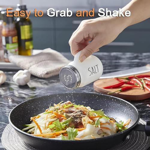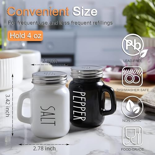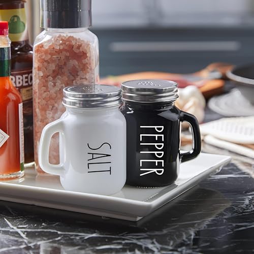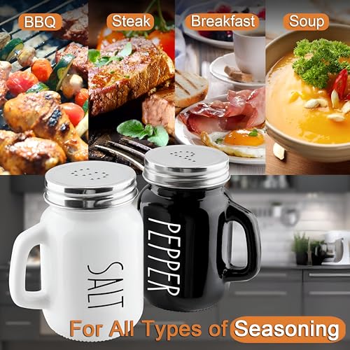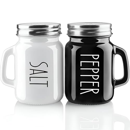 Generic - مجموعة برطمانات ملح وفلفل - ديكور مطبخ أنيق للمنزل والمطاعم وحفلات الزفاف، برطان خفق زجاجي مع أغطية من الفولاذ المقاوم للصدأ، بلون أبيض وأسود