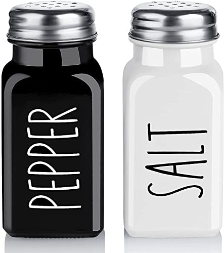 - طقم ملاحة للملح والفلفل من الزجاج مع غطاء من الفولاذ المقاوم للصدأ بنمط لطيف وعصري بلوني أبيض وأسود مصمم كديكور واكسسوارات للمطابخ أو المطعم من دوبيكا، سعة 77 جرام