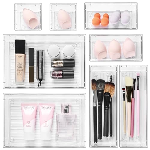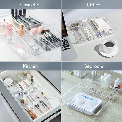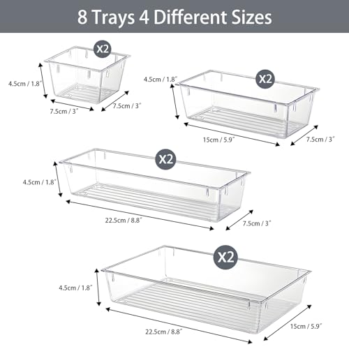 Samhe - 8 Pack Clear Acrylic Drawer Organizer, Silverware Drawer Organizer Kitchen Drawer Organizer, Utensil Organizer for Kitchen Drawer, Office, Bathroom Supplies