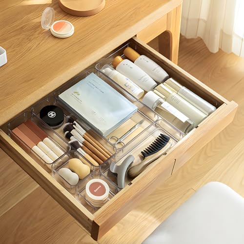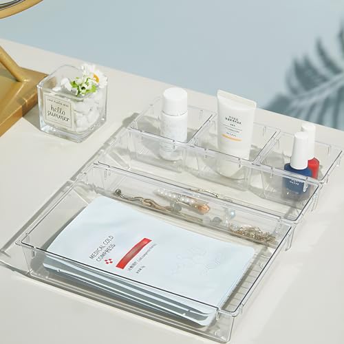 • Premium Material: The clear drawer organizer made of high-quality acrylic material, no BPA, no other chemical taste, smooth edges without cutting hands. Easy to use and save space. Transparent material allows you to find things quickly.