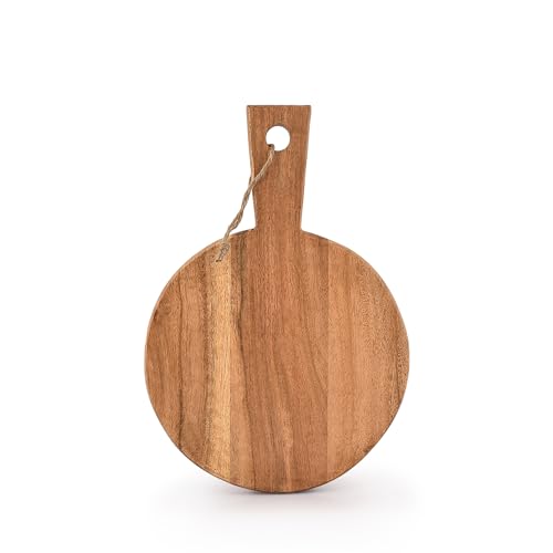 Samhita - Samhita Round Acacia Wood Cutting Board with Handle for Chopping and Serving Charcuterie, Cheese, Pizza, Bread - Wall Décor (33.02cm X 22.86cm X 1.09cm)