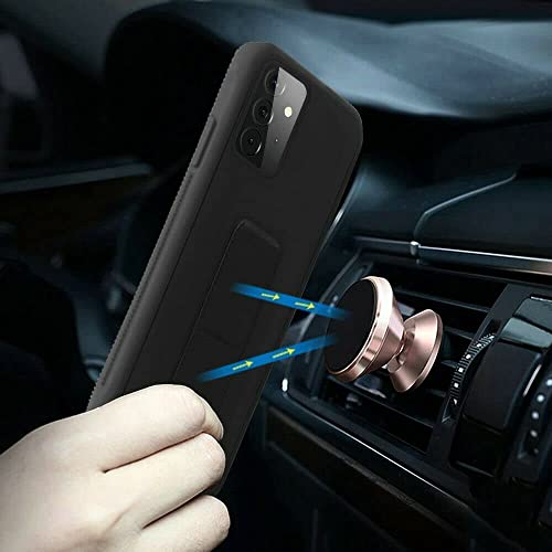 EMODIL - غطاء حماية سامسونج جالاكسي A04 مع حامل سيارة مغناطيسي وقاعدة وقوف، حزام يد وملمس سيليكون فاخر عمودي وأفقي مع قاعدة متعددة الاستخدامات لسامسونج جالاكسي A04