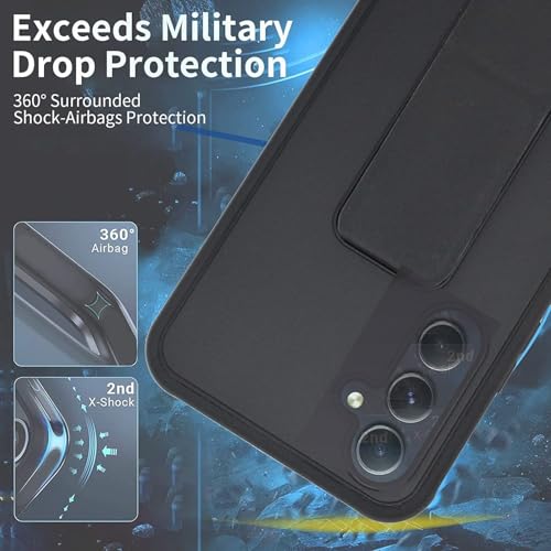 Zubitech - Samsung Galaxy A36 5G Back Stand Case Magnetic Car Holder Soft Silicone Horizontal & Vertical Kickstand Cover Wrist Strap Full protection Case for Samsung Galaxy A36 5G (Black)