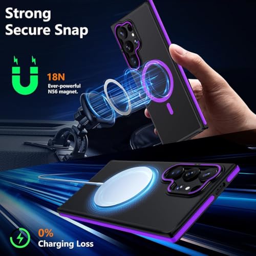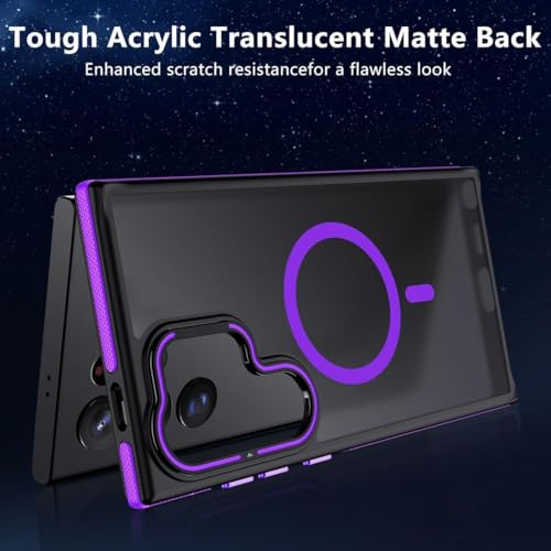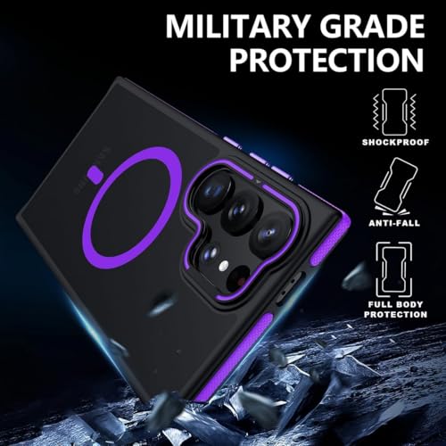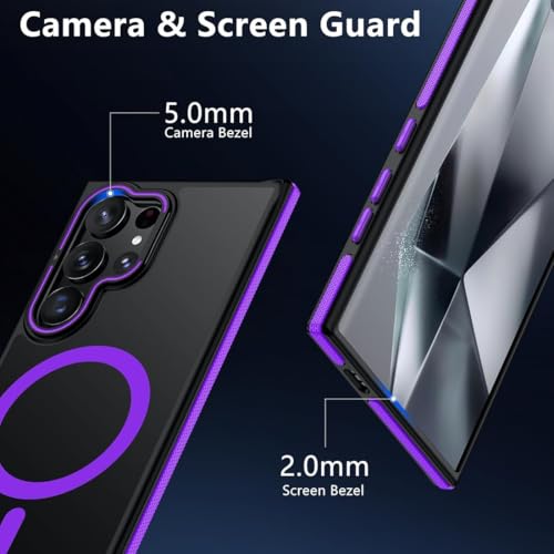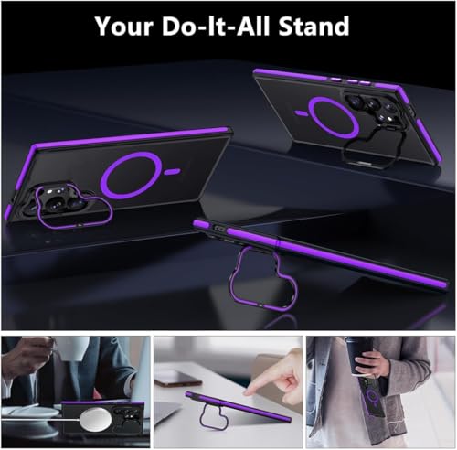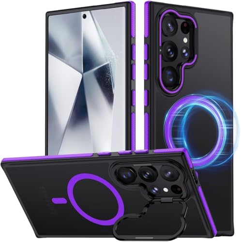 ELMO3EZZ - Samsung Galaxy S25 Ultra Case, Compatible with MagSafe, Anty-Slip Grip,Military-Grade Protective, Adjustable Kickstand Phone Case, Magnetic Case (Purple/Black)