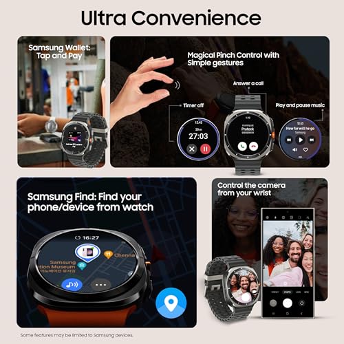 - [ULTRA CAPABLE] Galaxy Watch ULTRA has a 3nm Processor (3X faster) that supercharges your daily routine & optimizes battery life to give up to 100 hrs runtime. Double pinch comes in handy. A simple gesture can be used to take pictures, answer calls and / or turn off the alarm New hardware also includes Dual-Frequency GPS for improved & consistent location tracking