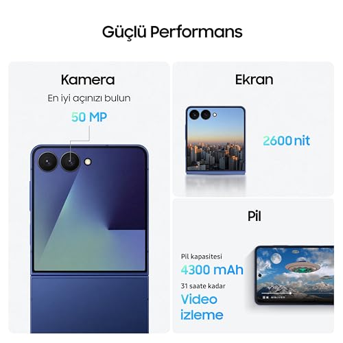 Samsung - Samsung Galaxy Z Flip7, AI Phone, Blue Shade, 512GB storage, 12GB Memory, 50MP Camera for Selfie, 3nm Processor, 4300mAh Battery (Samsung Turkey Guaranteed)
