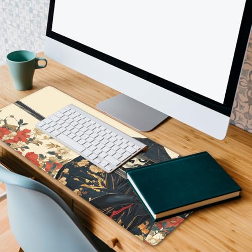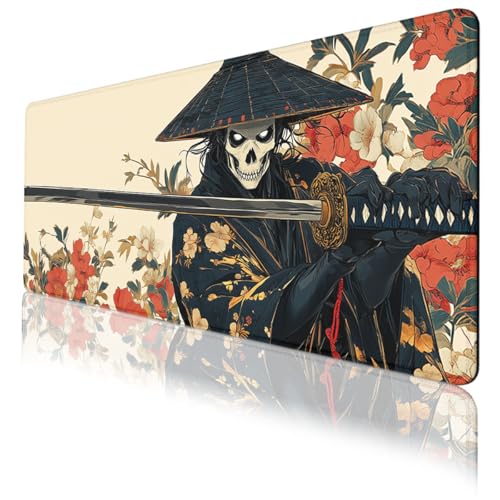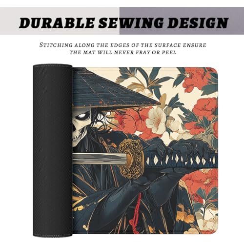 Csaksq - قاعدة ماوس للمكتب بتصميم جمجمة سوداء وذهبية بتصميم انيمي ياباني مع حواف مخيطة وقاعدة مطاطية مضادة للانزلاق ومقاومة للماء للمكتب والكمبيوتر والكيبورد واللابتوب والمنزل مقاس 31.5×11.8 انش