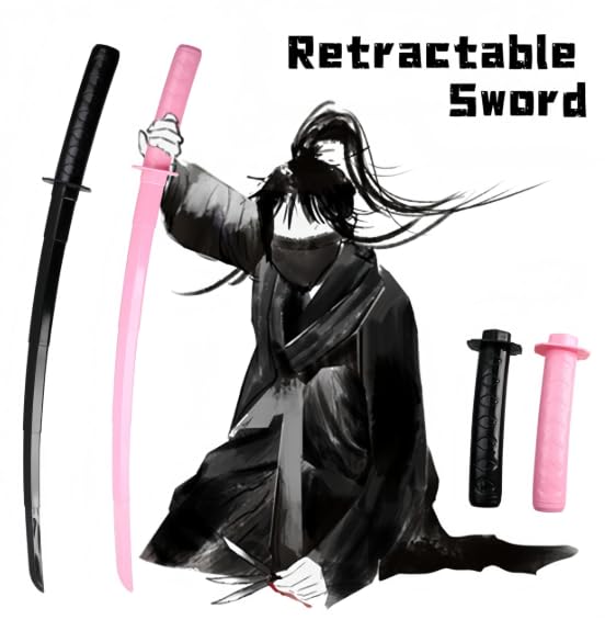 Generic - سيف ساموراي ثلاثي الأبعاد 3D مطبوع بالجاذبية قابل للسحب، سيف بلاستيك ثلاثي الأبعاد 3D قابل للسحب، لعبة كاتانا تلسكوبية، لعبة إبداعية للأولاد والبنات (أسود)