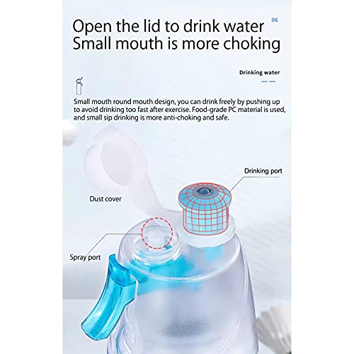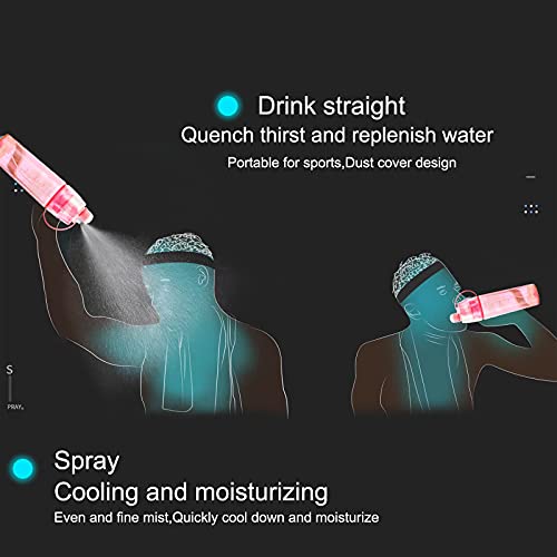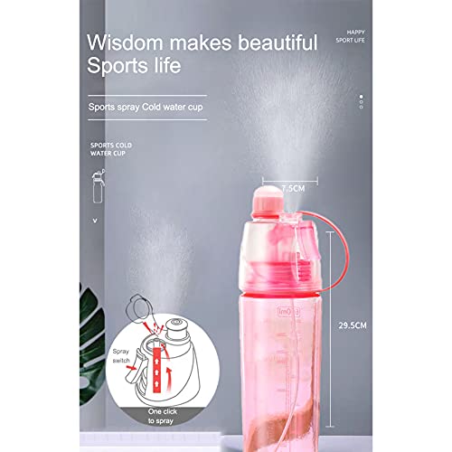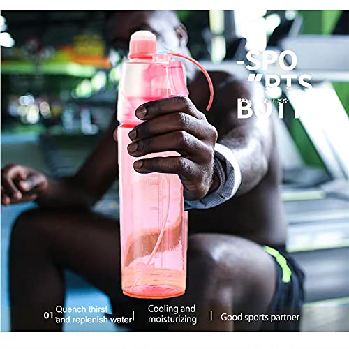 - MIST WATER BOTTLE MATERIAL:plastic (The food-grade silicone leak-leak pad is designed to lock water and prevent leakage,reusable, durable.);Misting Sports Drinking Bottle capacity:600ml(Large-capacity design can meet your long-term drinking water needs.)