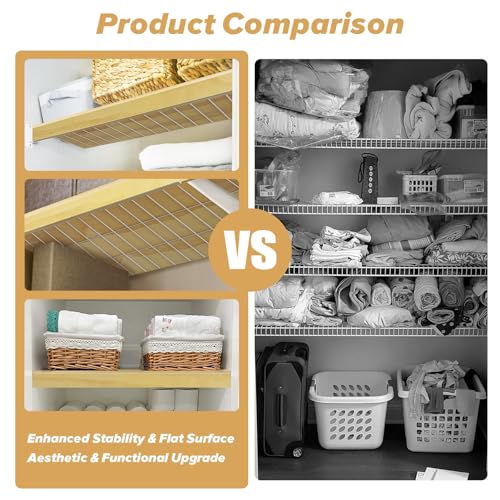 - قوي ويدوم طويلاً: غطاء الرفوف السلكية مصنوع من الخشب. يبلغ مقاسها 24 × 12 انش بسمك 0.4 انش، مما يوفر دعمًا موثوقًا به ولن ينحني أو يتدلى للاستخدام طويل الأمد!