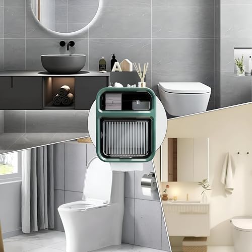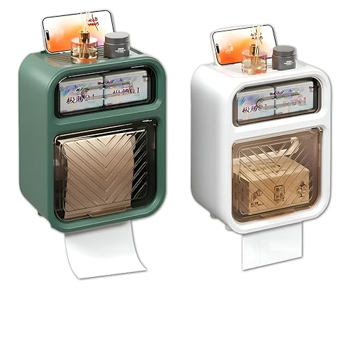Generic - حافظة أوراق صحية - صندوق تخزين متعدد الاستخدامات للحمام مع درج لتنظيم أنيق للوازم الورقية (قطعتين)