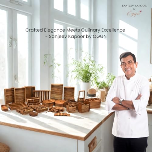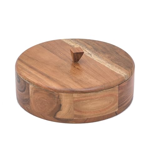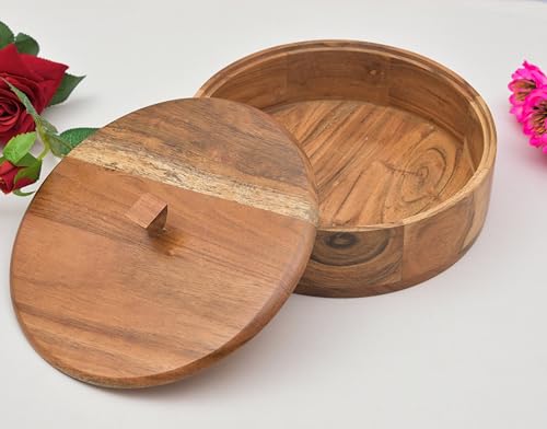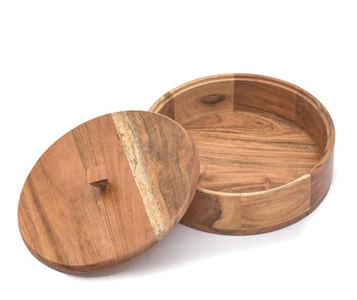 Sanjeev Kapoor - سانجيف كابور كسرولة من خشب الاكاسيا الطبيعي مع غطاء من او جي جي ان، صندوق تشاباتي خشبي مصنوع يدويا، حافظة ساخنة، روتي دابا للمطبخ، تحافظ على الطعام ساخنا لفترة طويلة (22.86 × 22.86 سم)