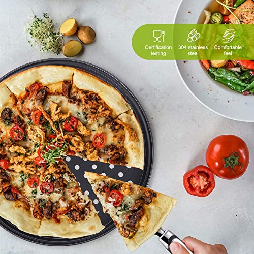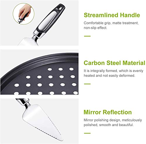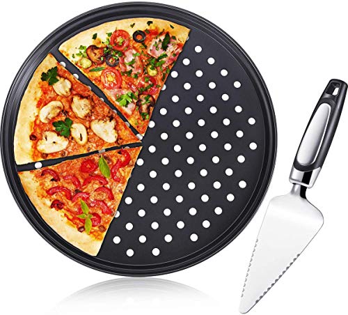 - Amount of package: you will get 1 pieces 12 inch non-stick pizza trays with holes and 1 piece stainless steel cake pizza cutter in this package, practical tools for home and restaurant use, allow you to bake pizzas at weekend with families or friends, prepare picnic food or just acquire the skill of making pizza.