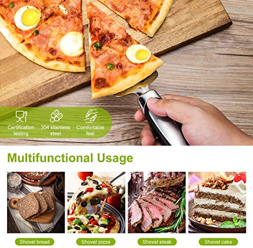 - Stainless steel pizza cutter: the tart dessert slicer features triangle shaped blade and fine serrated edge, lets you effortlessly cut pie slices and serve them without damaging delicate look, good for serving pies, pastry, cake, quiche, lasagna or pizza.