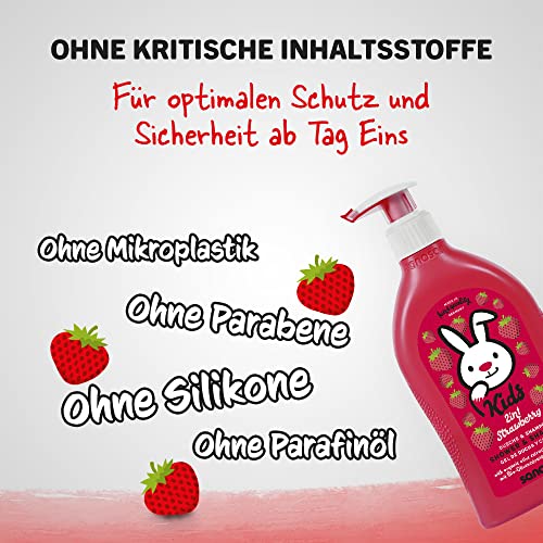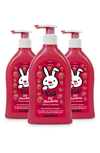 Sanosan - sanosan 2-in-1 Shower & Shampoo Strawberry for Children & Babies 3 x 400 ml - Shower Gel & Hair Shampoo with Organic Olive Extract & Milk Protein - Hair Care, Skin Care, Shower Gel, Hair Shampoo