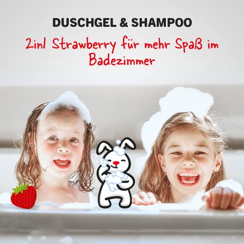 - Design – brings fun to the bathroom thanks to child-friendly design with cheerful colours and cool design – the 2-in-1 shower gel and hair shampoo with fruity strawberry fragrance and the cool rabbit Sani makes children and mums happy