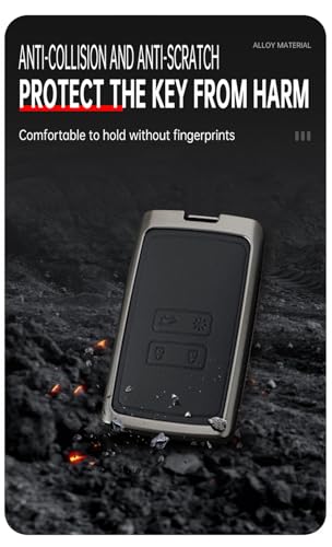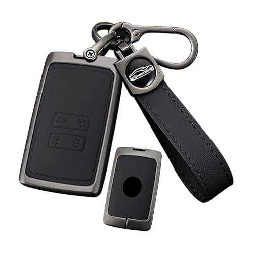 SANRILY - SANRILY Keyless Metal 4 Button Key Fob Cover Fit for Renaul Koleos Captur Megane Clio Scenic Talisman Arkana Key Case with Leather Keychain Black
