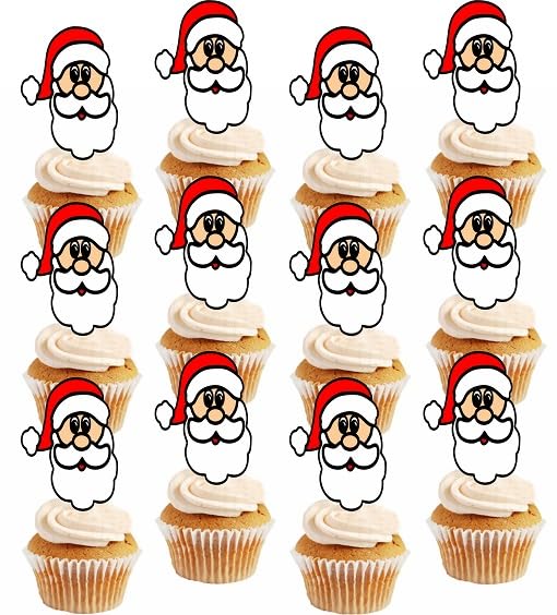 Generic - Santa Head Christmas Party Cupcake Toppers Paper Flags set - 12 pcs