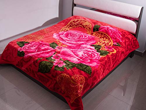 Santamora - Polyester California King Size Floral Pattern,Red - Bed Blankets