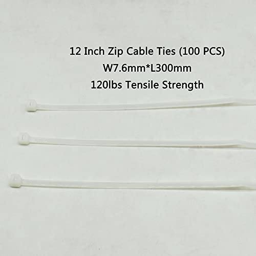 SANTIE - SANTIE 12 Inch Zip Cable Ties (100 PCS), (W7.6mm*L300mm)120lbs Tensile Strength - Heavy Duty White, Self-Locking Premium Plastic Cable Wire Ties for Indoor and Outdoor