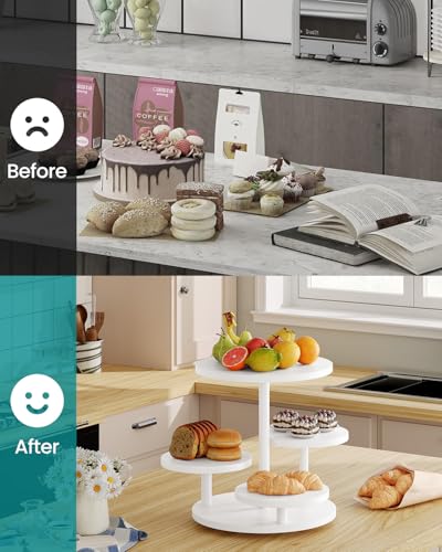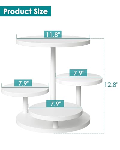 - Large-Capacity Rotating Cupcake Stand: This spacious 4-tier cupcake tower stand holds up to 50 cupcakes (under 1.75" diameter), perfect for daily use and special occasions. It includes: three 7.9-inch trays (each fits 9 cupcakes or a 4-7" cake) and a 11.8-inch top tray (holds 20+ cupcakes or an 8-11" cake). The 360° rotating base allows easy access from any angle, making it ideal for parties, cafes, and home displays