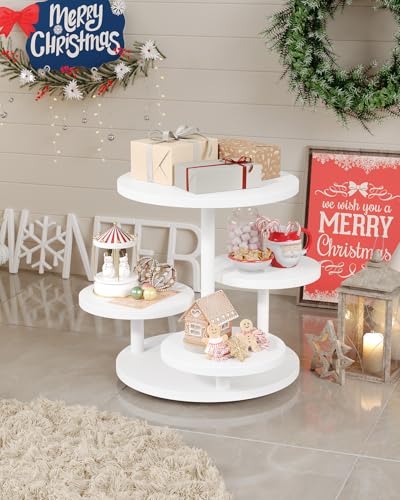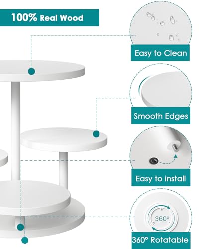 SANYOUNG - 4 Tier Wood Round Cupcake Tower Stand for 50 Cupcakes, Rotatable Cake Stands with Tiered Tray, Solid Wood Dessert Display Platter for Party Birthday Graduation Baby Shower Wedding, White