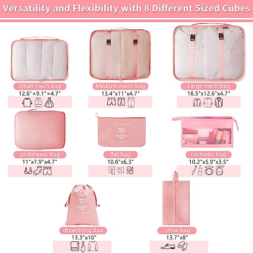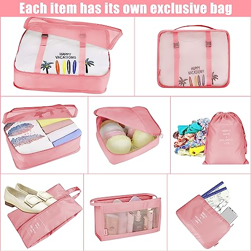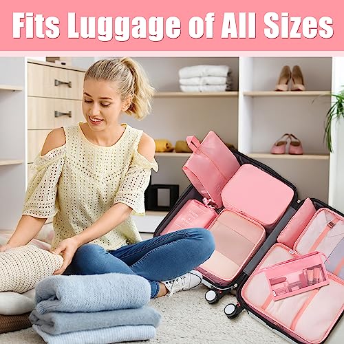 SANZHENG - Travel Packing Cubes 7 Pcs Set, Lightweight Travel Storage Bags for Clothes, Large Luggage Organizers Packing Cubes Set for Travel Bag Suitcase (pink)