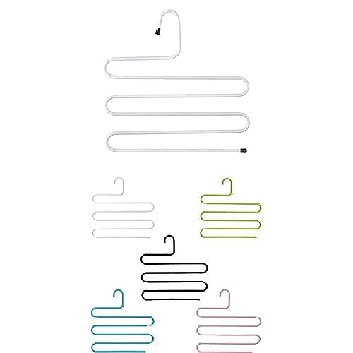 SAPU - SAPU Pants Hanger Multi-Layer S-Style Multi-Purpose Towel Clothes Hanger - White + Multi pants hangers rack for closet organization,stainless steel s-shape 5 layer clothes hangers - assorted colors