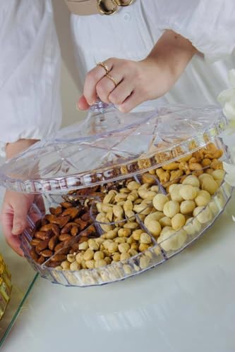 - MULTI-COMPARTMENT LAYOUT: Interior features multiple sections to separate and organise different types of snacks, nuts, or sweets for convenient serving and attractive presentation