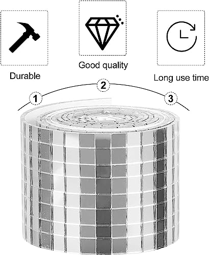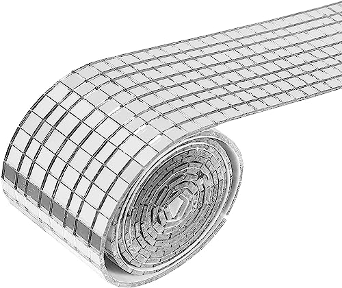 Sarvadeshi - Self-Adhesive Mosaic Mirror Stickers Art Kit, Mirror Tiles Wall Art Stickers, Mini Glass Roll Mirror Mosaic Tiles Wall Decal for DIY Home Craft Decoration Material. (Silver Roll_2 PC)