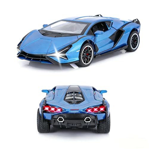SASBSC - SASBSC Lamb Toy Cars for Kids Ages 3-12 Diecast Metal Model Car with Light and Sound Pull Back Car Toys for Boys Age 3 + Year Old (Blue)