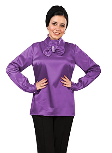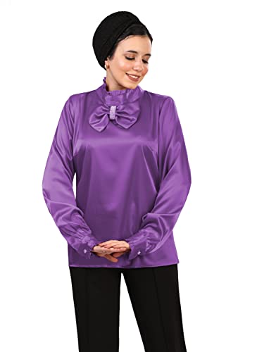 Smoky Egypt - Satin Blouse With Mock Neck And Bow Tie - Purple
