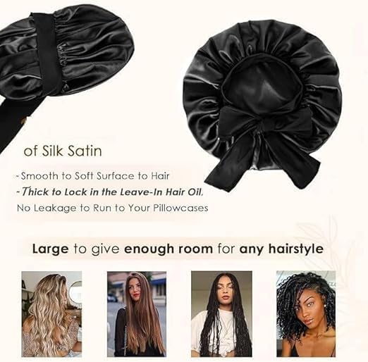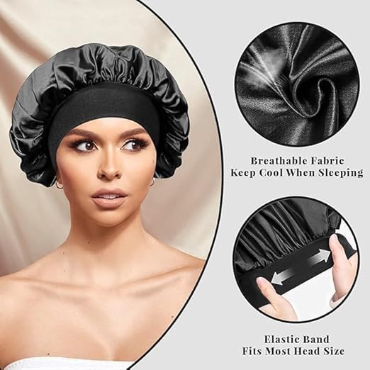 WINZI - Satin Bonnet for Sleeping Pack of 2 – Adjustable Soft Hair Sleep Caps for Women, Protect Natural Hair, Braids, Curly or Straight Styles, Comfortable & Durable