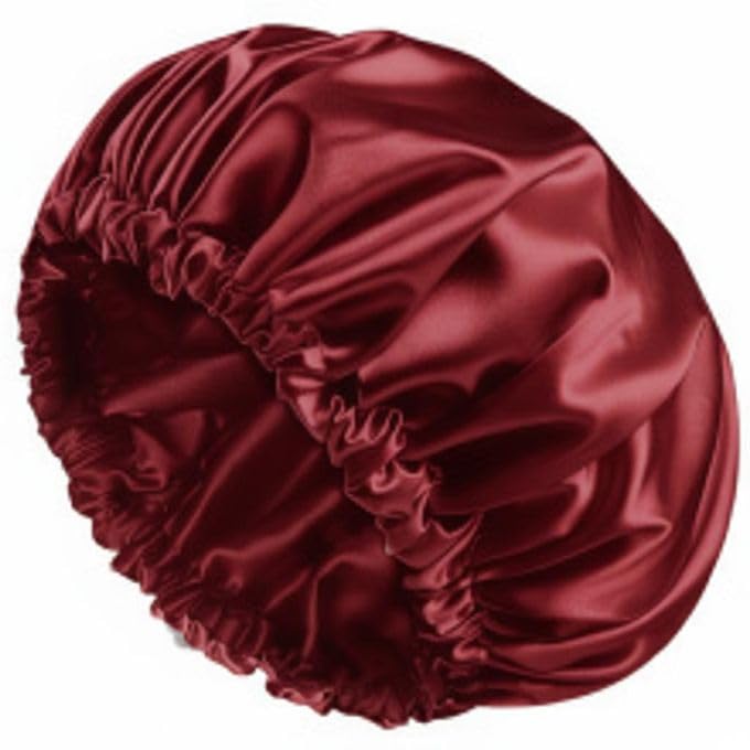 Generic - Satin Bonnet Sleep Cap for Women, Reusable Hair Cover for Girls with Long Hair, Elastic Design (Red)