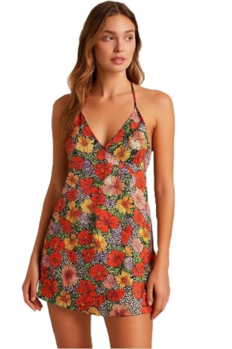 Generic - فستان نوم ساتان مزين بالزهور - احزمة كتف رفيعة، فتحة خلفية انيقة - مقاسات من 3XL الى 6XL (توماس اند سبليندور