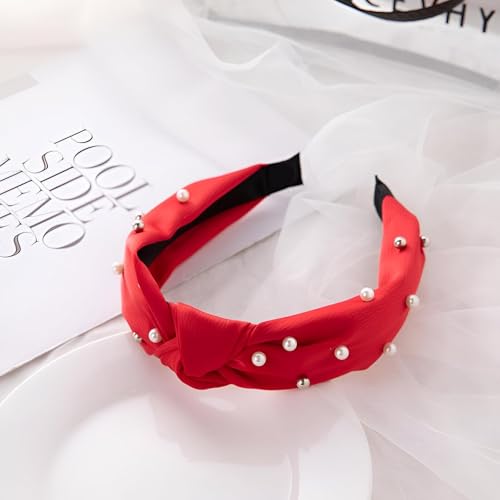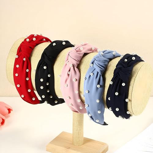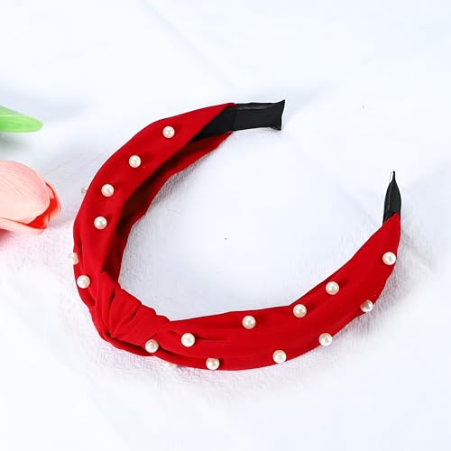 Generic - اكسسوار شعر مصنوع من الساتان للنساء - رباط رأس بتصميم معقود ومزين باللؤلؤ، طوق رأس متعدد الاستخدامات للملابس الكاجوال والرسمية، ناعم ومريح