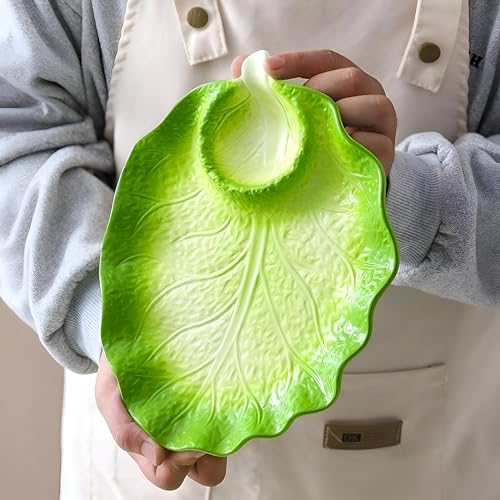 - Unique lettuce leaf design adds a creative, natural touch to the table. The vibrant green porcelain shape closely resembles real lettuce, combining functionality with artistic presentation for an appealing dining experience.
