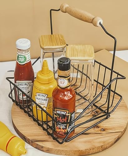 • Made from high-quality materials, the basket boasts a natural wooden handle that ensures durability and a rustic aesthetic, perfect for enhancing the presentation of condiments during family meals or gatherings.