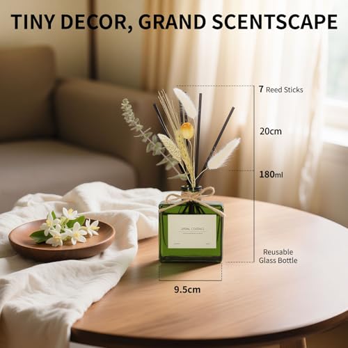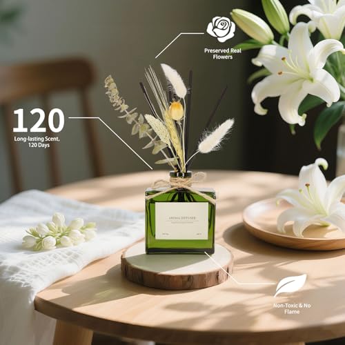 - Complete Luxury Set: The reed diffuser includes: (1) 180 ml of premium aromatic solution; (2) glass bottle often with minimalist design; (3) 7 reed sticks with high capillarity; (4) Decorative composition with natural dry flowers. ATTENTION: dry flowers are natural botanical products and can contain traces of pollen. The use of subjects with notes with notes with flowers or pollen is not recommended. Keep out of the reach of children.