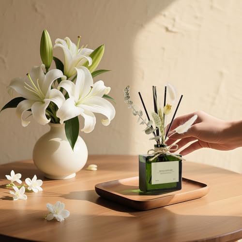 Saussavita - Reed Diffusers Set, Jasmine & Lily Air Freshener, 6.1 oz / 180 ml Scented Diffuser with 7 Sticks,120 Days Long Lasting Home Fragrance for Bathroom Bedroom Living Room Shelf Decor