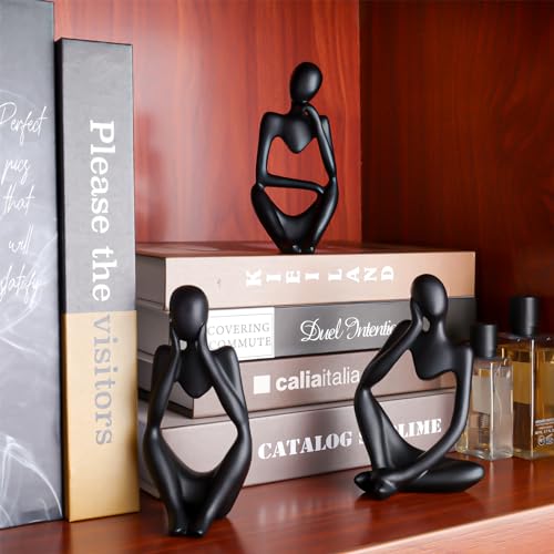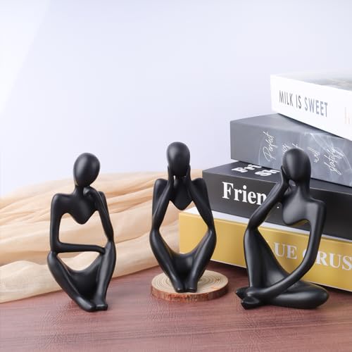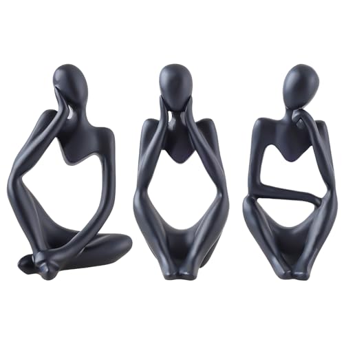 Savgkoyt - مجموعة تماثيل مفكر، منحوتات فنية بنمط تجريدي، تماثيل من الراتنج بلون أسود، تماثيل قابلة للجمع، مناسبة للطاولة، للمنزل، المكتب، غرفة المعيشة، ديكور عصري، هدايا رائعة من سافجكويت، عبوة من 3 قطع