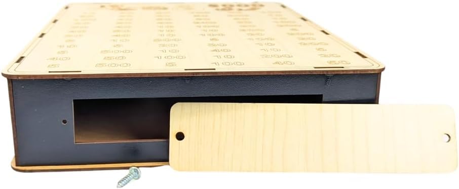 - DESIGN: Beautifully crafted wooden savings tracker with engraved numbers and icons, featuring a slot for inserting money and a sturdy construction