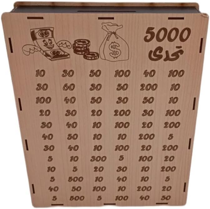 Generic - Savings Challenge Wooden Bank, Piggy Bank Savings Tracker with Numbers for 5000-10000 EGP - Motivation Target Box for Money Challenge for Kids and Adults (5000)