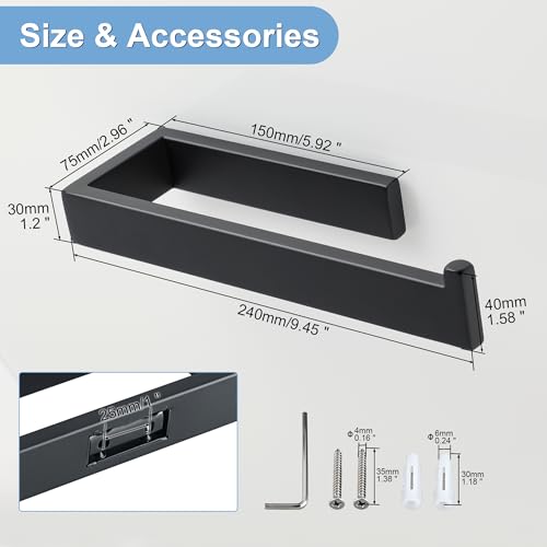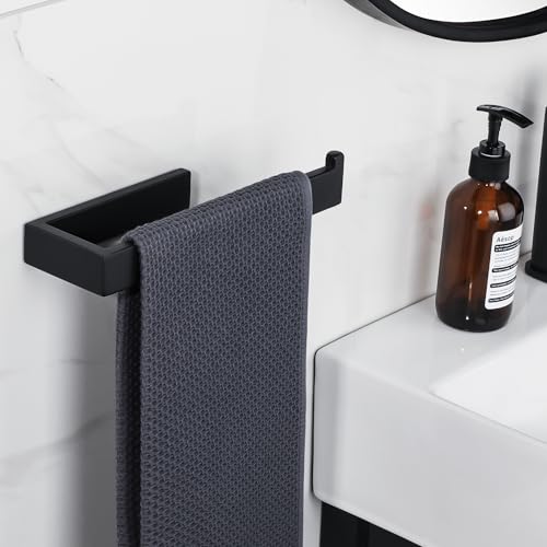 SAYAYO - سايايو حامل مناشف اليد 24 سم يثبت على الحائط، حلقة منشفة سوداء من الستانلس ستيل SUS304 للحمام والمطبخ، مع ثقب