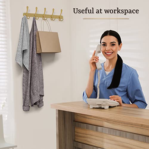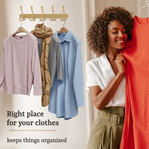 SAYONEYES - Coat Rack Wall Mount with 5 Tri Coat Hooks for Hanging – 16 Inch Heavy Duty SUS304 Stainless Steel Brass Finish Waterproof – Wall Hook Rack for Bathroom Kitchen Entryway (Gold)
